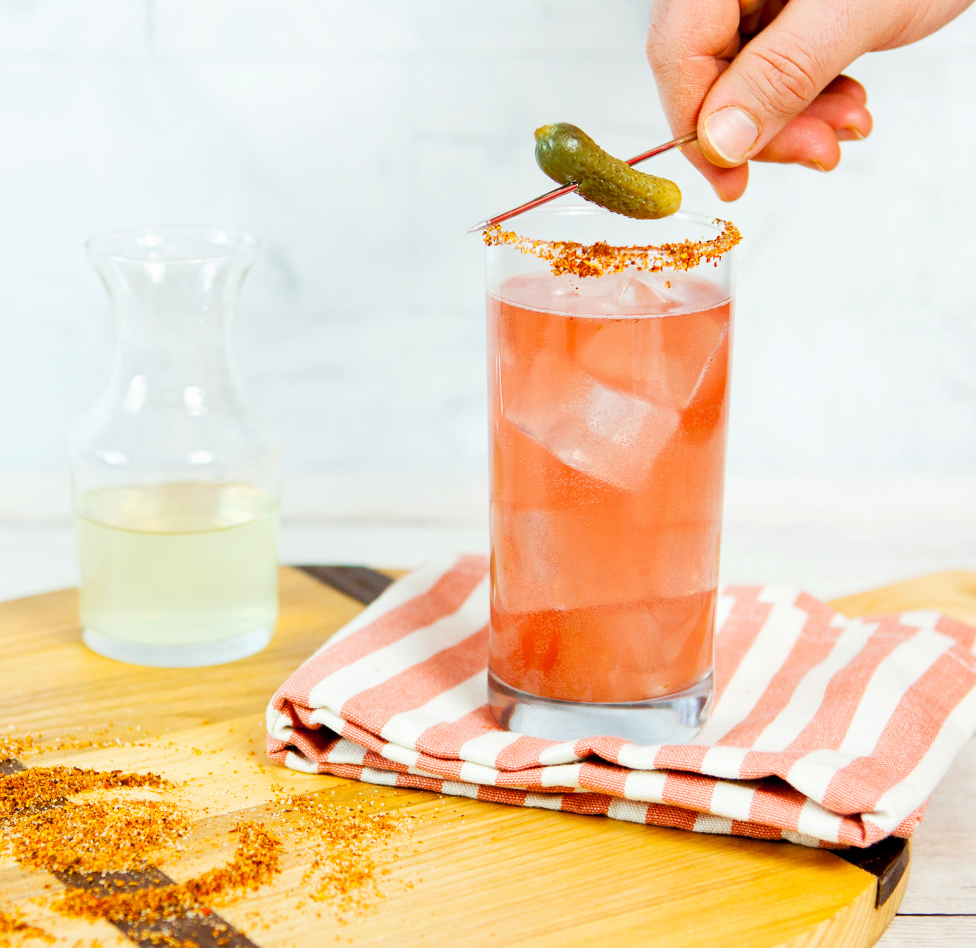 Perhaps you’ve been out with friends at that special point in the night when those shot of spirit + shot of brine “picklebacks” start making an appearance. Or maybe you’ve sat down to a meal at a southern restaurant and seen the glowing, red Kool-Aid-soaked dill pickles known as Koolickles offered up as an appetizer. The Refresco en Vinagre from Chris Simpson and Chef Manuel “Manny” Roca of Austin’s Academia reminds us of both of these adventurous, relatively modern experiences. Bubbles and the bright notes of pomegranate and lemon offset reposado’s sharp, vegetal edge and set the stage for a house-made pickle brine that pulses with the savory flavors of dill, garlic, and coriander.
