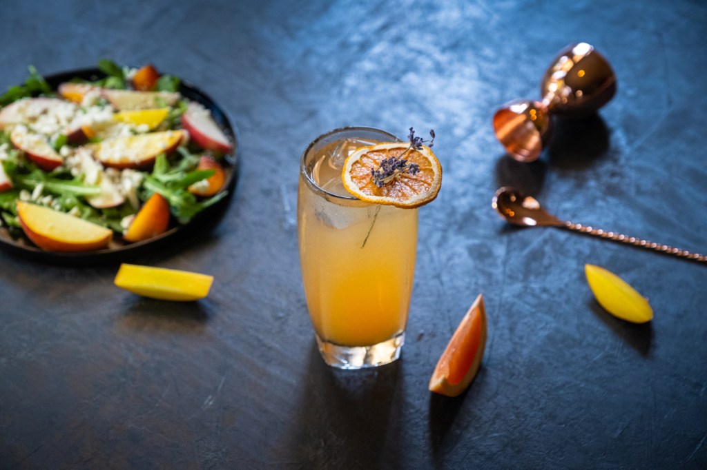 Live your best life among pals and pool floats with Pretty & Poppin’, a subtle and sassy number that fizzes away with the citrus and floral scents of a much-welcomed summer breeze. At first sip, J’Nai Williams’s highball is a lounger, with a light and delicate essence that keeps its starring spirit up front. But then come the bubbles, which set off an enchanting synchronized swim routine of flavors from grapefruit, elderflower, and lavender that aims to dazzle. Jump on in—this cocktail’s just fine!