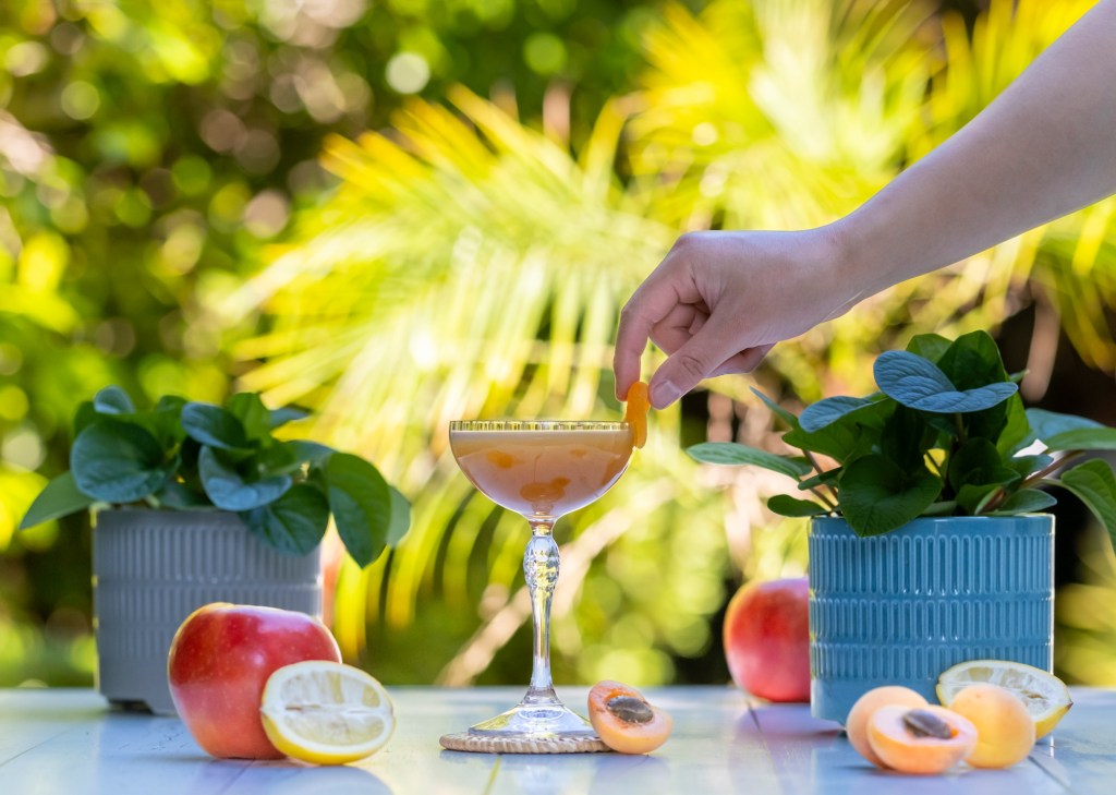 What if there were a way to nod to years growing up in the Middle East with one’s next drinkable delight? Imagine a particular pitted wonder that could provide a juicy and vivid view into the region’s culture! These ideas and more were on Leah Moss’s mind as she mapped out the next great American whiskey sour, and they’ll be satisfied quite efficiently on the day When Apricots Fly. Making the most of the fleeting fresh fruit’s very short window of viability can be vexing—as many in the region are aware. Much less improbable, though, is how delicious apricots can be when they bestow their well-rounded brightness to a classic coupe along with lemon, apple, and a hint of honey and vanilla!