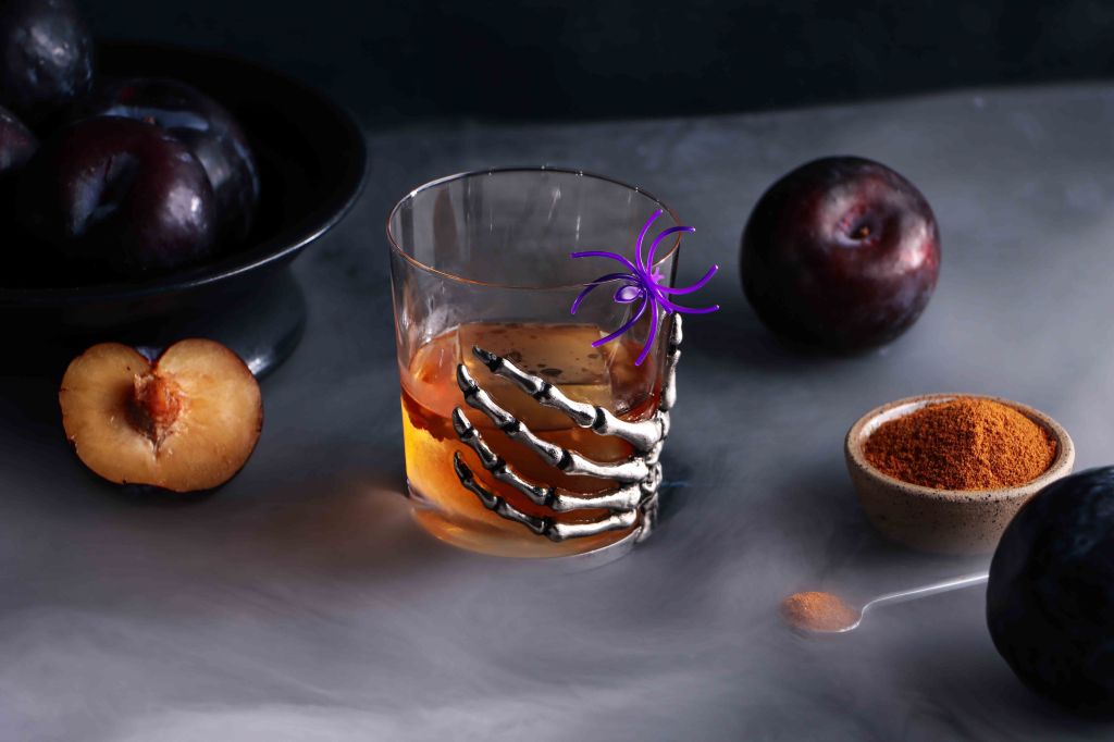 Sweet, smoky, and spiced just right, Sally’s Song is a comforting cocktail with a spooky edge – much like its namesake from The Nightmare Before Christmas. Mezcal and juicy plum create a rich, fruit-forward base, while a touch of Ras el Hanout (a warming North African spice blend) brings an unexpected twist.