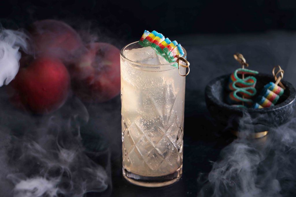 Big smoke, bright fruit, and just the right amount of tang – that’s what makes Smoke & Pucker a drink worth savoring. Mezcal’s signature smokiness is lifted by juicy Palisade peaches from Colorado, transformed into a luminous peach syrup, and finished with a subtle hit of lemon in Sanpellegrino’s Limonata. For a garnish, we’ve topped it off with a pucker-worthy hit of sour candy.